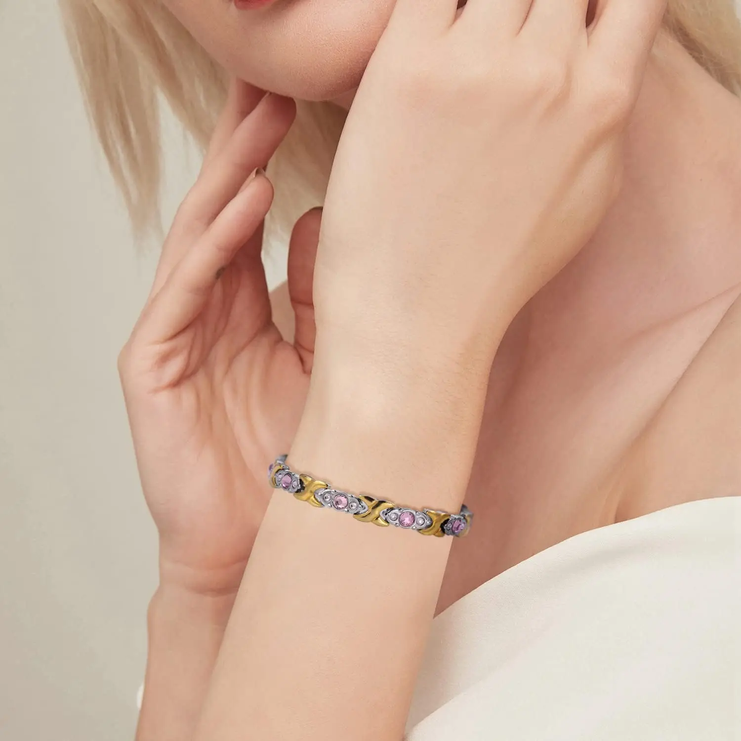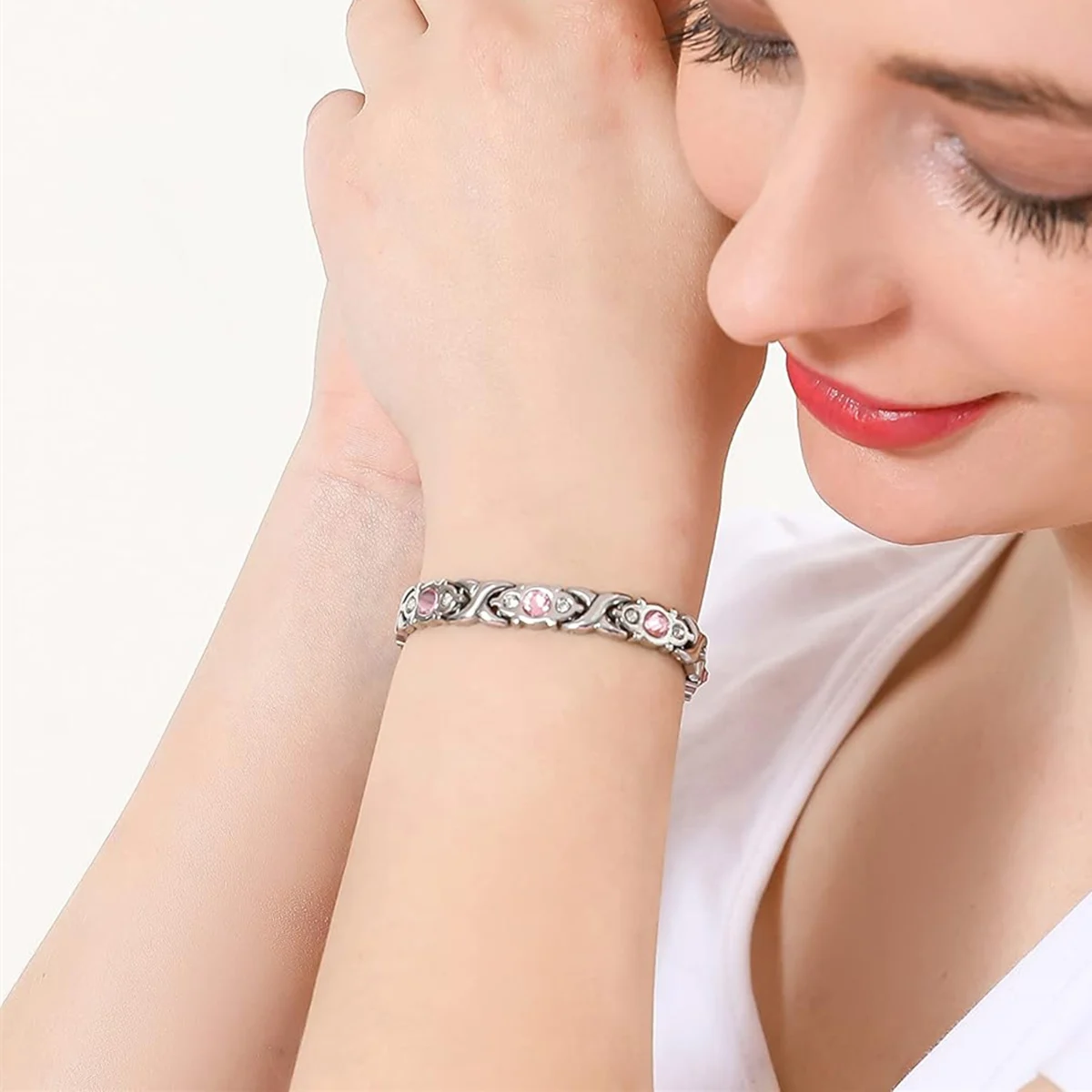 ARADOO Titanium Steel Crystal Bracelets for Women Classic Stainless Steel Zirconia Link Bracelet Jewelry Gifts